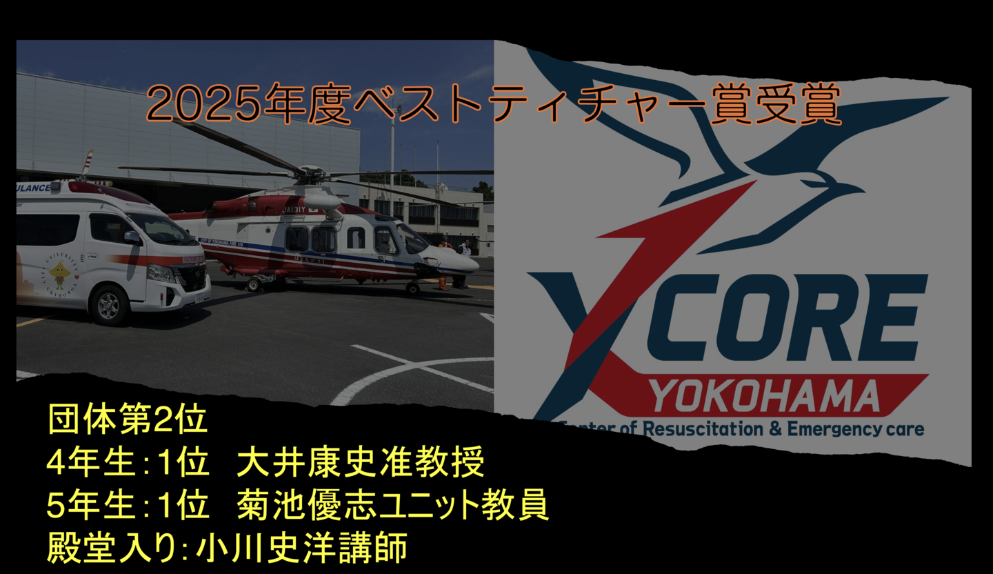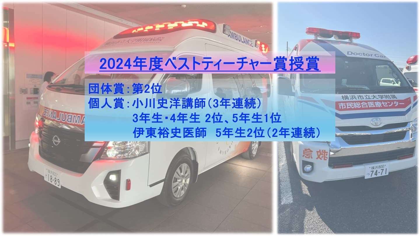 2025年ベストティーチャー賞が発表され、団体2位、個人1位4年生大井医師、5年生菊池医師、殿堂入り小川医師が受賞しました。 |