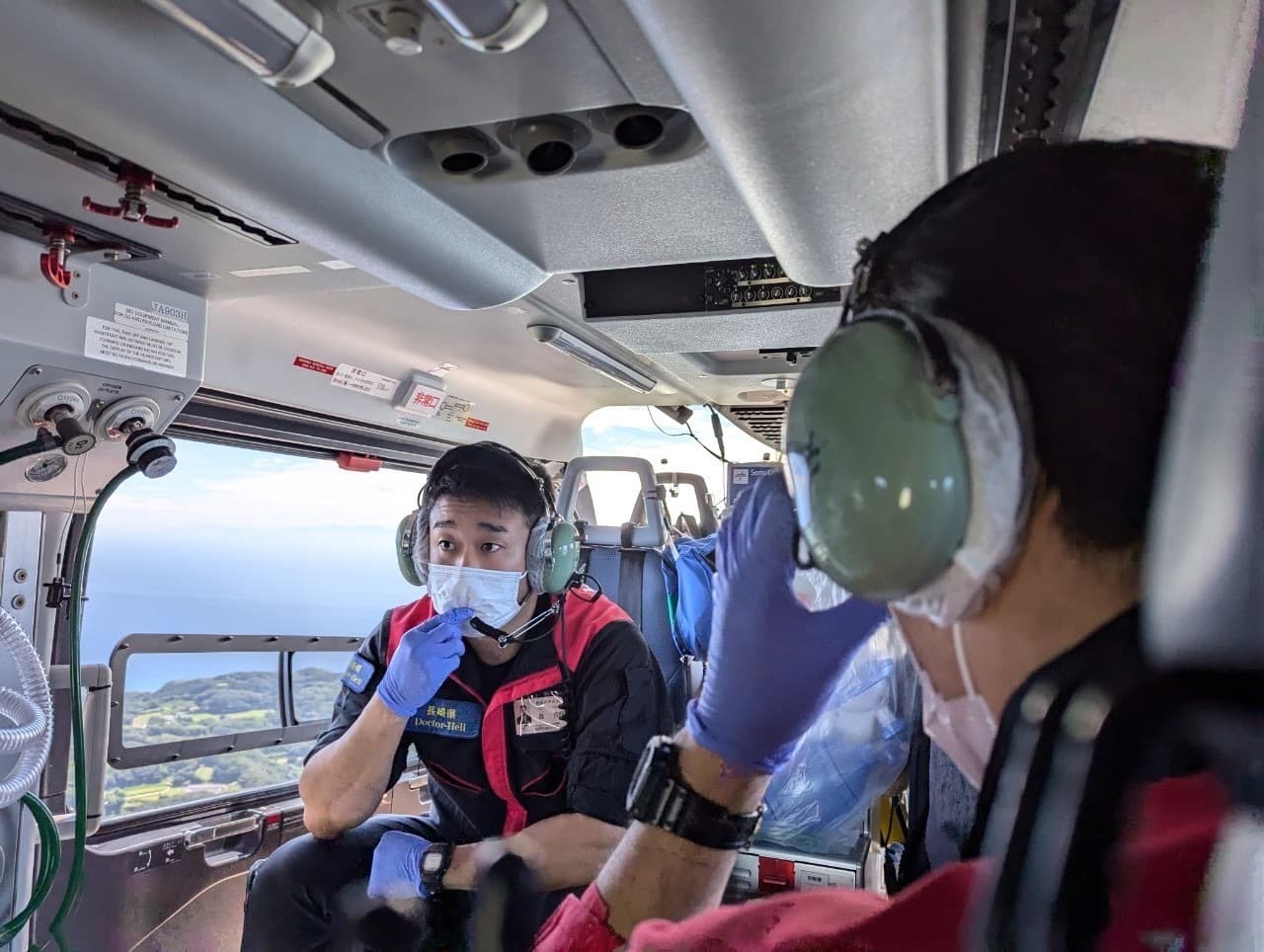 機内では痙攣が判断できないため直近救命センターへ搬送し状態の安定化が優先と思われましたが、ミダゾラム筋注で鎮痙が得られる状態であり、当日家族よりかかりつけ大学病院へ問い合わせをしていたこともあり県をまたいでの搬送としました。