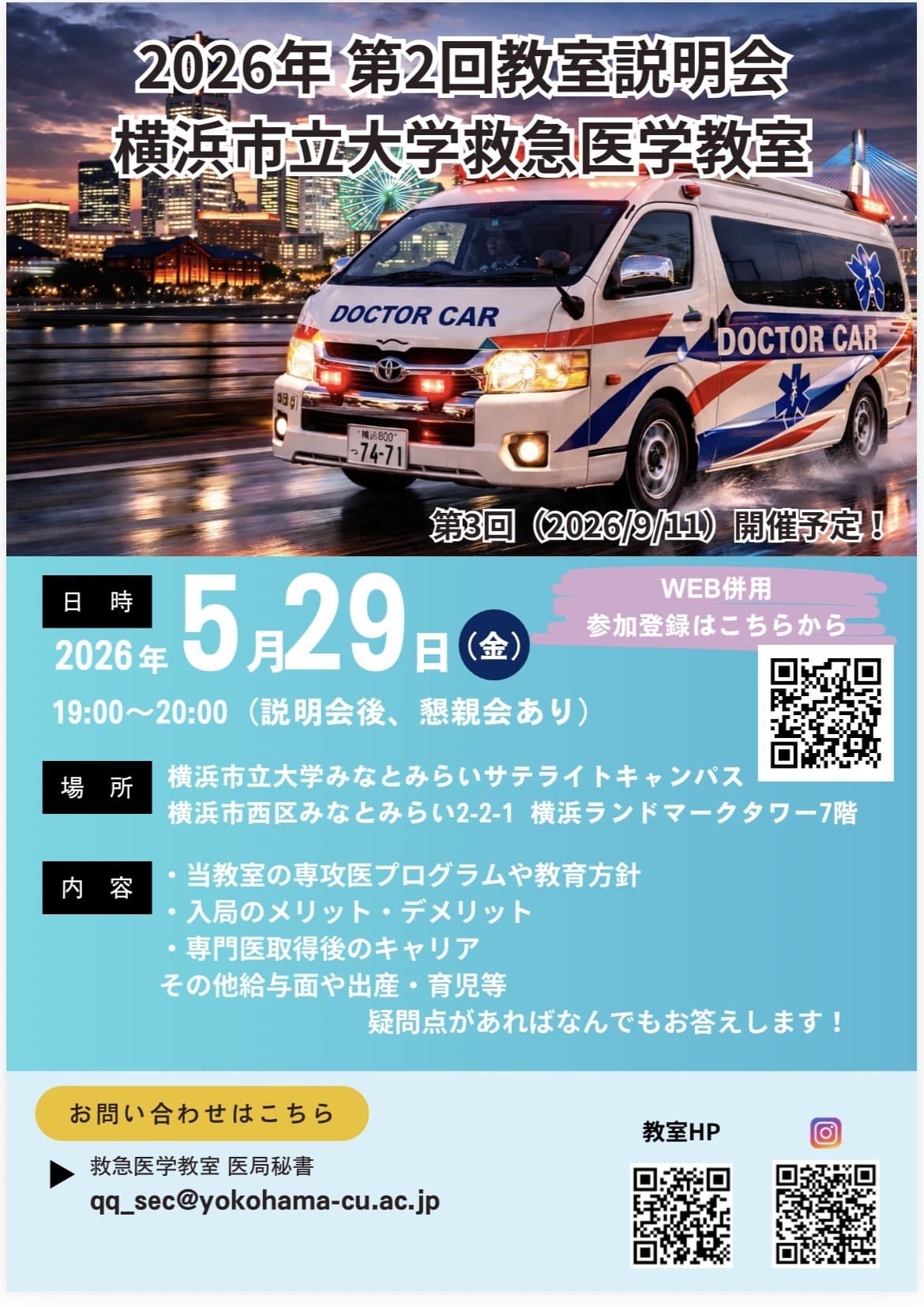 横浜市大救急医学教室の問い合わせ・説明会参加・見学について