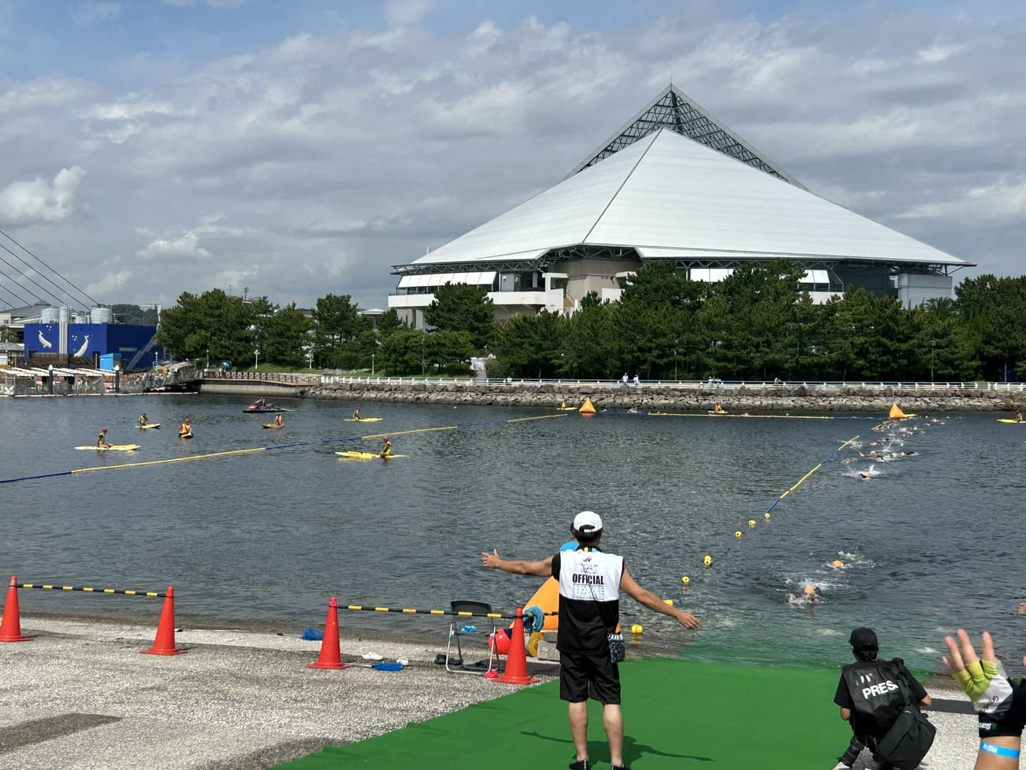 昨年、スイムエリアで足場にウニがの発生による外傷が多く、今回は足場の養生等をさらに厳重に行い、対応したことで、棘による外傷は発生しませんでした。